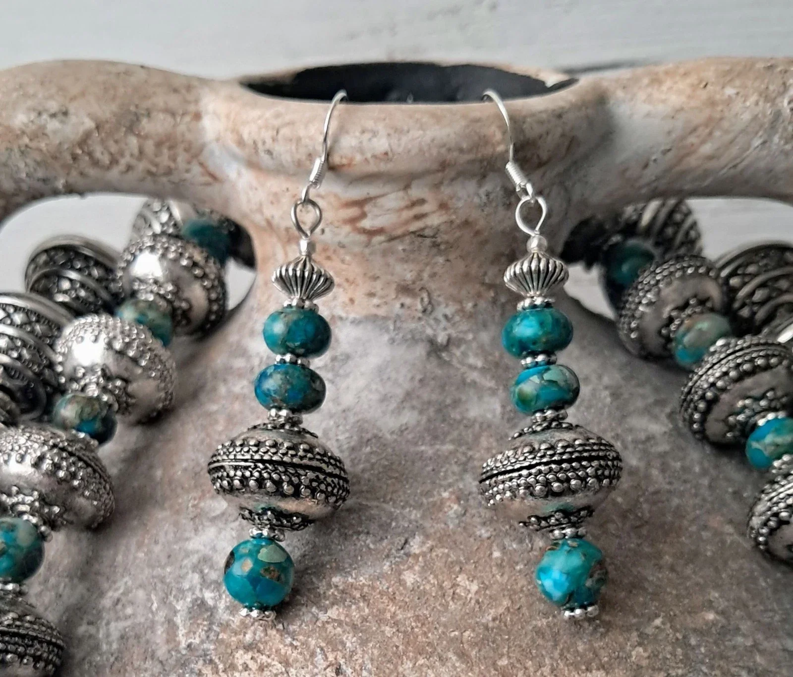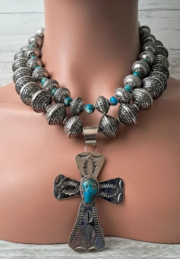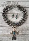 Southwestern Turquoise Cross Double Strand Statement Necklace & Earring Set