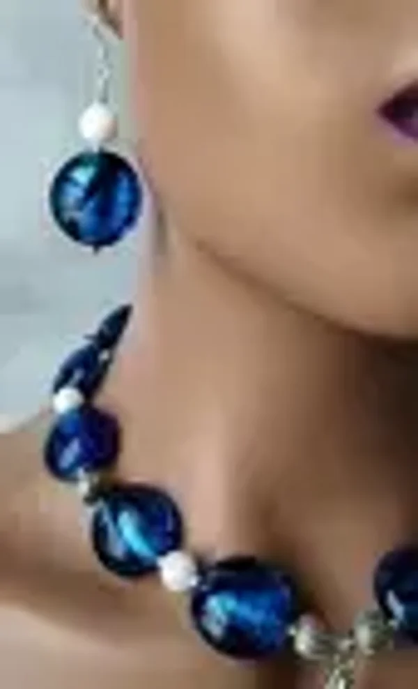 Silver plated sea urchin round beads, white Jade & large (1") round and cobalt blue glass beads adorn this large silver starfish pendant.