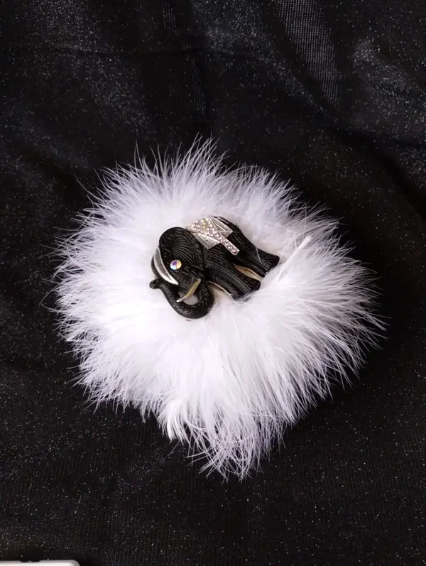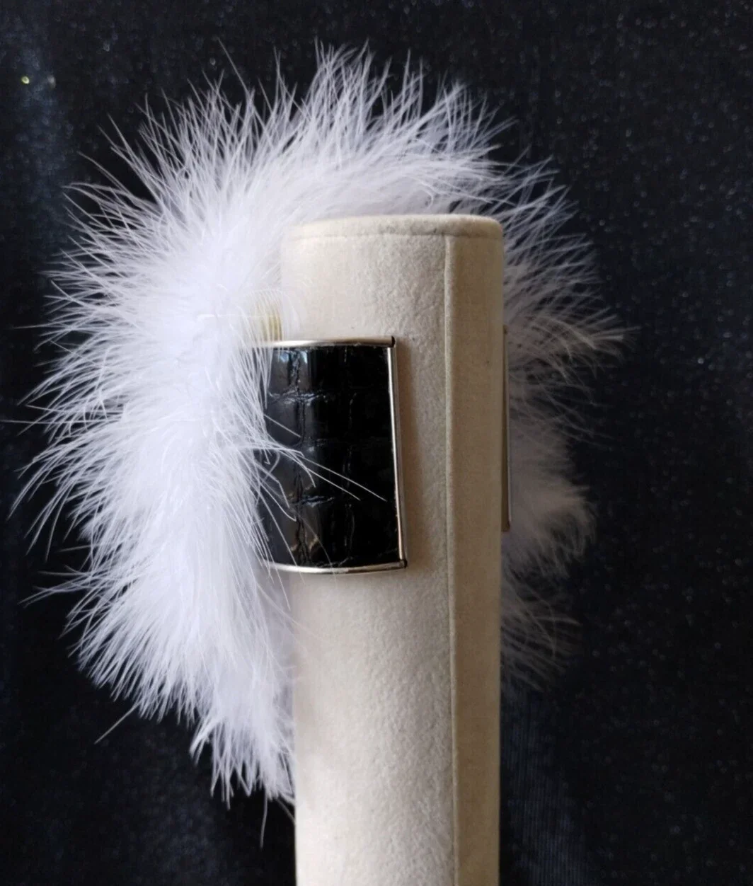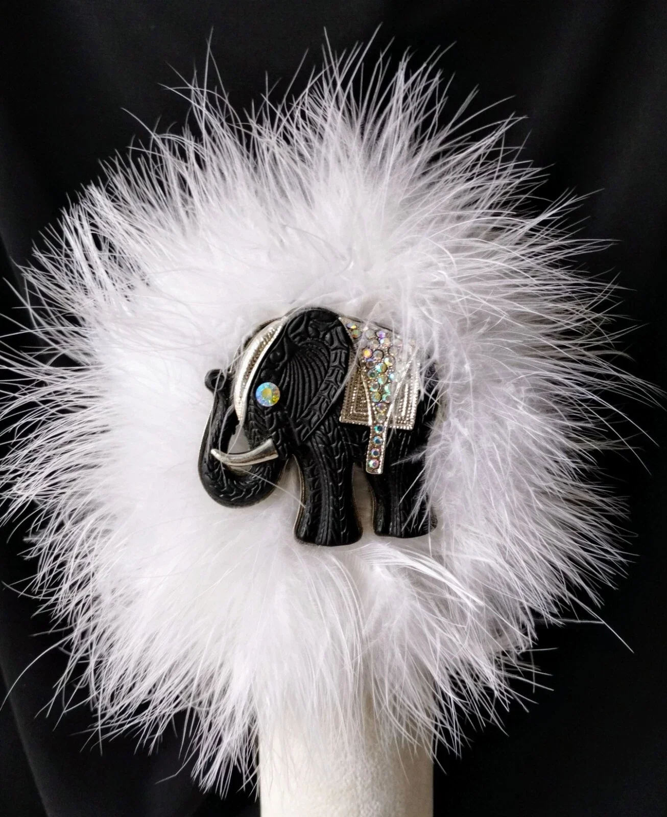 Safari Collection Elephant Exotic White Marabou Black Leather Cuff