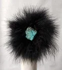 Turquoise slab adorned with exotic black marabou feathers