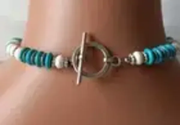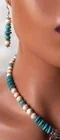 Stunning one of a kind necklace set. Large thunderbird with faux turquoise cabochon. Beaded with blue & white howlite turquoise. Southwestern silver-plated beads. Approximate measurements - necklace 17 1/4", pendant 2 3/4" x 2 1/4", pierced dangle earrings 2 1/4" long. Silver toggle clasp. Approx. 94 grams.