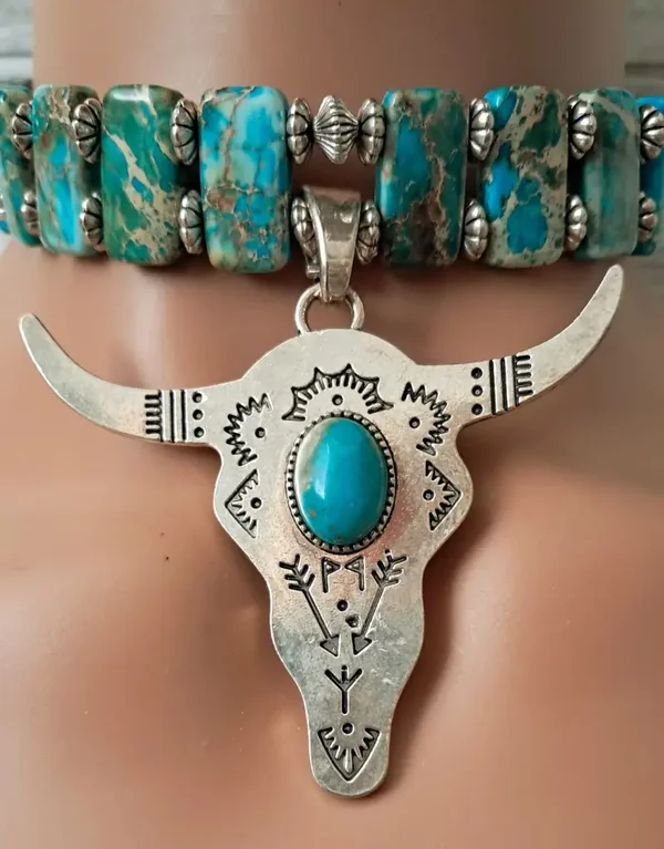 Imperial Jasper Longhorn Turquoise Choker Necklace
