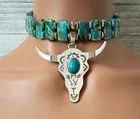 Large Longhorn Bull Skull with large Genuine Turquoise Cabochon.