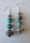 Southwestern double strand Imperial Jasper beads & silver-plated heavy metal beads. Large silver Longhorn Bull Head Pendant with genuine turquoise cabochon stone. Pendant is approximately 3" x 2 3/4". Top strand is approximately 17 1/4". Toggle clasp. Earrings are pierced dangle with 925 wires. Approximately 2 1/4" long. Earrings weigh approximately 6 grams each. Set weighs 226 grams total.